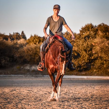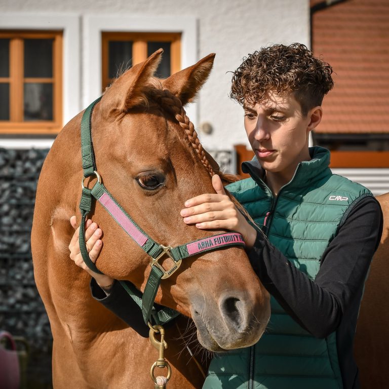 Seit über zehn Jahren bin ich selbst Pferdebesitzerin und aktive Reiterin im Reining-Sport. Meine Pferde habe ich stets eigenständig ausgebildet und dabei mit verschiedenen Trainern zusammengearbeitet. Diese langjährige Erfahrung hat mir ein tiefes Verständnis für die Kommunikation mit Pferden vermittelt.