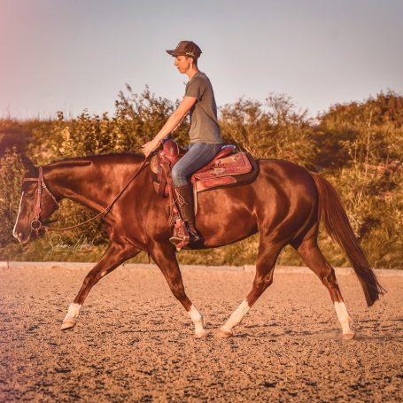 Seit über zehn Jahren bin ich selbst Pferdebesitzerin und aktive Reiterin im Reining-Sport. Meine Pferde habe ich stets eigenständig ausgebildet und dabei mit verschiedenen Trainern zusammengearbeitet. Diese langjährige Erfahrung hat mir ein tiefes Verständnis für die Kommunikation mit Pferden vermittelt.